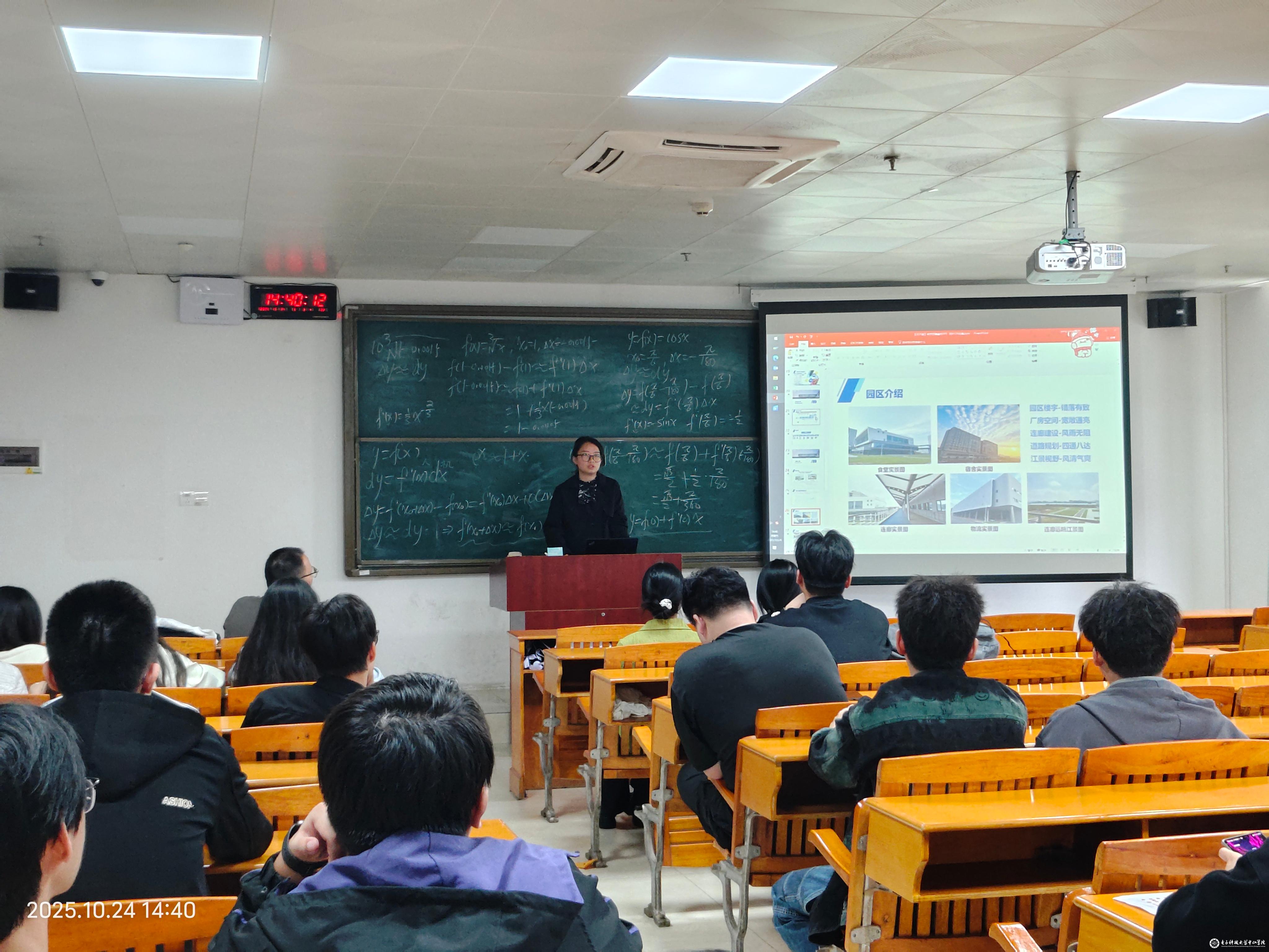 宣讲中,企业代表先介绍公司概况。随后,企业代表详解招聘信息:推出生产储备干部(负责车间交付,发展方向生产经理 / 主管)、技术储备干部(负责设备维保 / 技改 / 编程,发展方向工程师)两大岗位,月薪6300-8000元;同时,通过图文展示详细介绍了企业宿舍环境、配套设施等生活保障内容,消除同学们的后顾之忧。